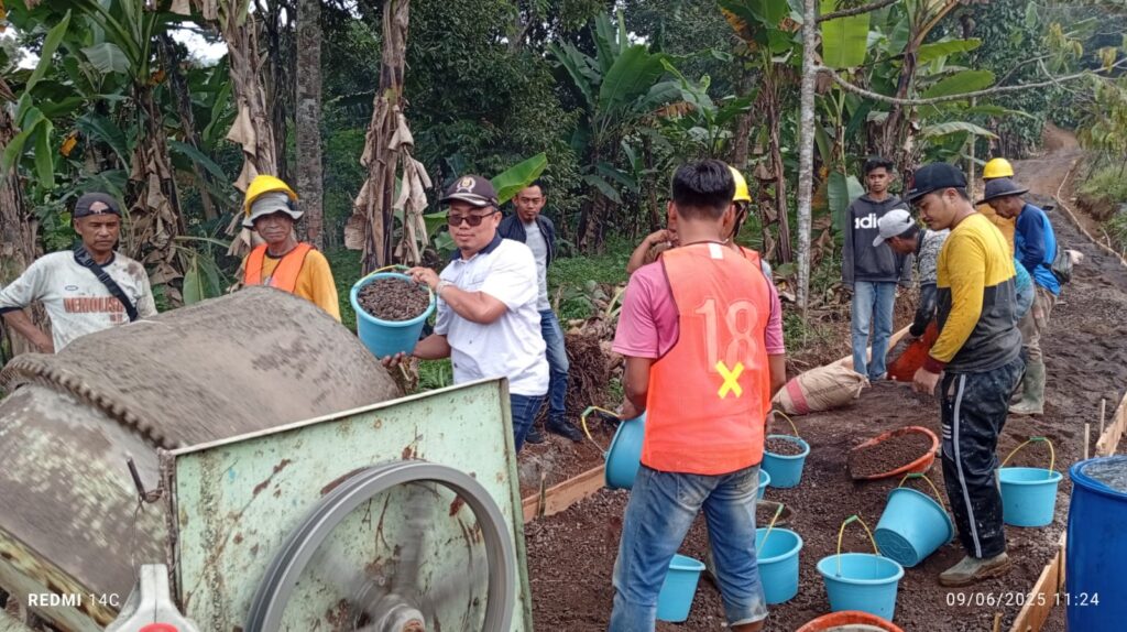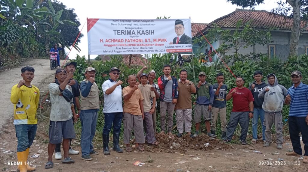 Anggota DPRD Kabupaten Bogor dari Fraksi PKS, Achmad Fathoni, turun langsung meninjau serta ikut serta dalam pembangunan rehabilitasi dan pemeliharaan Jalan Usaha Tani (JUT) di Kampung Cinangsi, RT 5 RW 3, Desa Sukawangi, Kecamatan Sukamakmur, Selasa (10/6/2025).